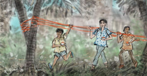 ‘ভাল মাঞ্জার জন্য যা যা সরঞ্জাম দরকার সব ওরাই কিনে আনত দোকান থেকে, কিন্তু আসল মন্ত্র ছিল কাচের গুড়ো। ওইটি ঠিকঠাকভাবে সুতোর গায়ে মাখিয়ে রাখতে পারলেই কেল্লা ফতে। এ-বাড়ি ও-বাড়ি থেকে বাতিল বোতল চেয়ে এনে বস্তায় পুরে শিলনোড়া দিয়ে সেসব কাচ ভাঙার কাজ চলত।’