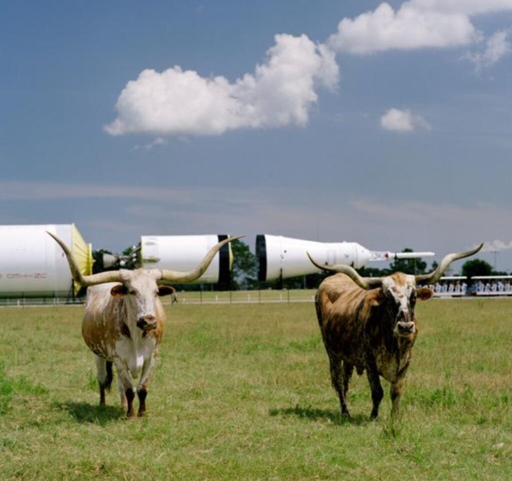 কাঠফাটা রোদে, টুপি দিয়ে মাথা বাঁচিয়ে, ওই বিশাল চত্বরে ঢুকেই, প্রথম নজর কাড়ল গুটিকয়েক অভিজাত চেহারার বিশাল শিংওয়ালা গরু, মনে হল জার্সি গরু। কিন্তু না, ওদের কাউ বললে রীতিমত ক্ষুণ্ণ হন হিউস্টনের লোকেরা। ওরা টেক্সাস লংহর্ন। এই রাজ্যের প্রতীক পশু বলা যায়। কিন্তু এরা কেন স্পেস সেন্টারে? আসলে একসময়ে যখন মহাকাশ গবেষণা কেন্দ্র গড়ে ওঠেনি, এই মাঠে আনন্দে চরে বেড়াত ওরা। তারপর নাসা তৈরি হল, শুরু করল লংহর্ন প্রজেক্ট। স্কুলের ছাত্রছাত্রীদের কৃষি ও পশুপালনের প্রশিক্ষণ। এখন এই শিংওয়ালার দল পরমানন্দে থাকে নাসার আদরে। শুনলাম, বিজ্ঞানীদের সংস্কারের মান রাখতে, নতুন মহাকাশযানের পরীক্ষা-নিরীক্ষার সময়ে এদের হাজির রাখতেই হয় আশেপাশে। এরা নাকি শুভ।