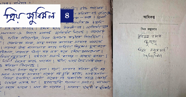 সুবিমল বসাকের প্রয়াণের পর, তাঁর বাড়ি থেকে উদ্ধার হয় তাড়া-তাড়া চিঠি। সামান্য কয়েকটি ইতিপূর্বে প্রকাশিত হলেও, অধিকাংশই অপ্রকাশিত। অপ্রকাশিত চিঠির সেই ভাণ্ডার থেকে নির্দিষ্ট কয়েকটি চিঠি নির্বাচন করে এই ধারাবাহিকের পরিকল্পনা। এই পর্বে বিনয় মজুমদারের চিঠি।