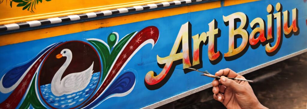 উত্তর থেকে দক্ষিণ— কলকাতা শহরের রাস্তা মন দিয়ে খেয়াল করলেই, অধিকাংশ বাসের পেছনে দেখা যাবে লেখা থাকে— ‘Art Baiju’। প্রথমেই জানতে চাইব, আপনার এই কাজের জগতে আসার সূত্রপাত কীভাবে?