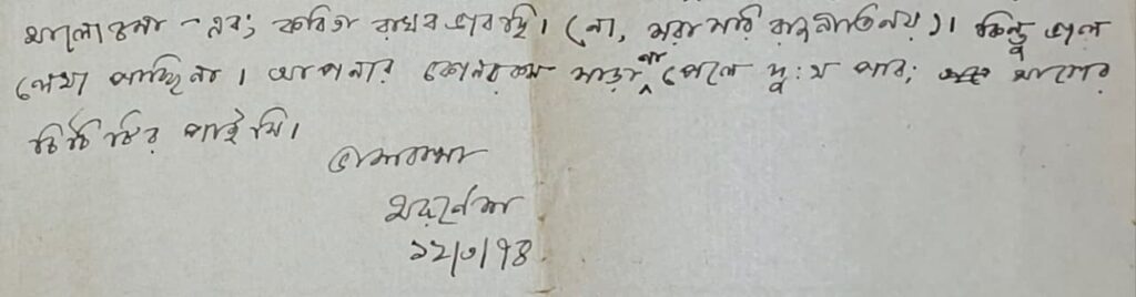 পরে চিঠিতে বিস্তারিত লিখবো। আপনার চিঠি চাই।