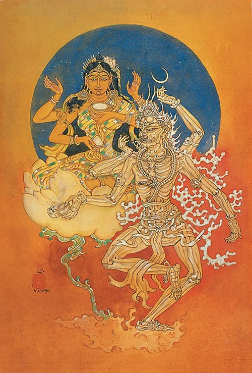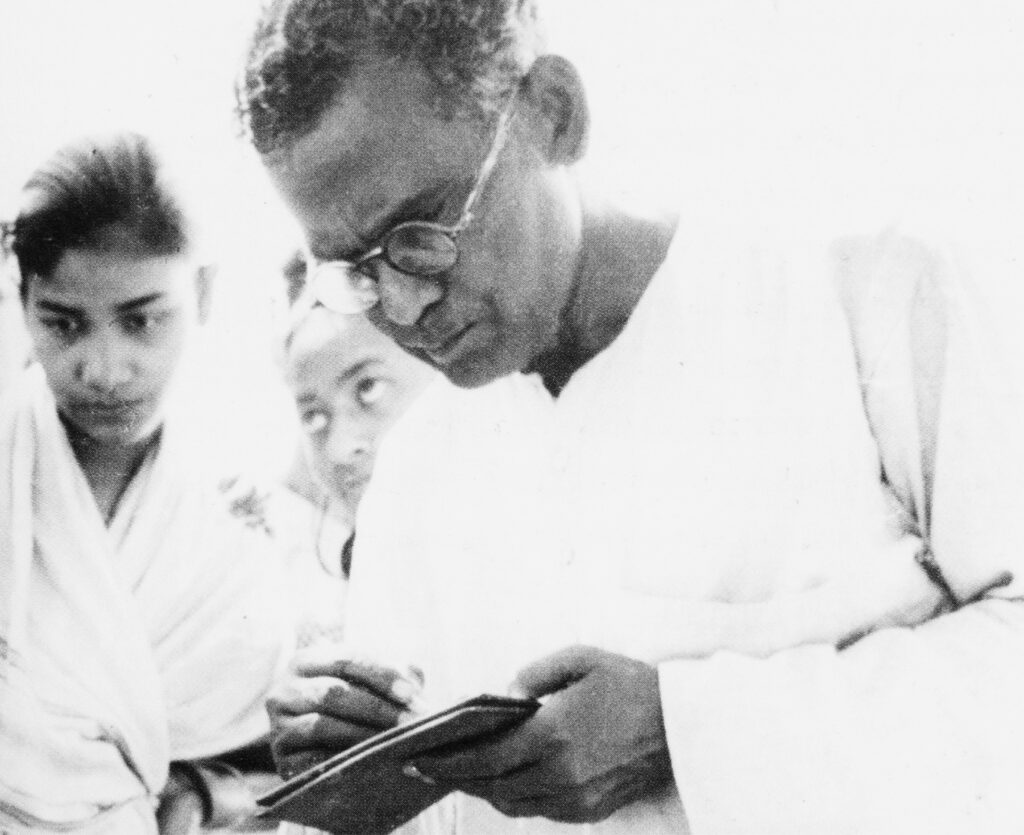 ১৯৪৩ সালে যখন মন্বন্তরে বিধ্বস্ত সারা বাংলা, চল্লিশের শিল্পীরা এঁকে যাচ্ছেন ক্ষুধা ও মৃত্যুর সেই ভয়ংকর দৃশ্যাবলি, তখন নন্দলাল আঁকেন তাঁর ‘অন্নপূর্ণা’। শীর্ণ শিব নৃত্য করছে। পিছনে মলিন নেত্রে অন্নপূর্ণা। ছবির তলায় লেখা রয়েছে: ‘অন্নপূর্ণা যার ঘরে/সে কাঁদে অন্নের তরে/এ বড় মায়ার পরমাদ’। ধ্রুপদি ভাষায় এরকম প্রতিবাদী ছবি কমই দেখা যায়। ক্ষুধার আর একটি রেখাচিত্র তিনি এঁকেছিলেন ৬.৪.১৯৪৬ তারিখে। মাঝখানে শীর্ণ নদী। ওপাশে বনে পিকনিক করছে ধনী ও সম্ভ্রান্ত ছেলেমেয়েরা। এপারে কয়েকটি ক্ষুধার্ত শিশু করুণ শরীরে তাকিয়ে আছে সেদিকে। এই হলেন নন্দলাল, যিনি আদর্শ ও বাস্তবকে মিলিয়েছিলেন তাঁর শিল্পযাত্রায়।