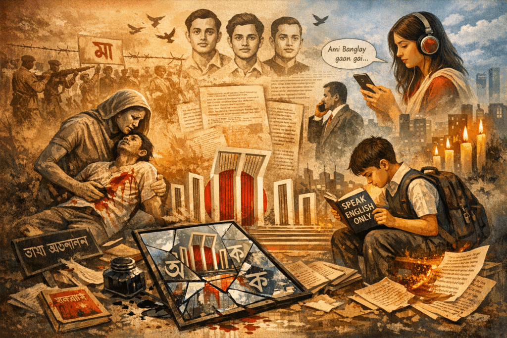 ভাবতে কষ্ট হয়, এই ভাষার জন্য জন্য প্রাণ দিয়েছিলেন ঢাকার সালাম, রফিক, বরকত, জব্বার(১৯৫২) কিংবা বরাক উপত্যকার একাদশ শহিদ, যার মধ্যে আছেন কমলা ভট্টাচার্য (১৯৬১)— আরও কতজন! প্রাণ দেওয়া দূরে থাক, আমরা একটু সম্মান দিতেও পারছি না। প্রতিদিন সংকোচে আর বিকৃতমুখে ‘আরশোলা’কে ‘কক্রোচ’ বলছি, ‘উল্কি’কে ‘ট্যাটু’ বলছি; ‘কেননা’-কে ‘কেন-কি’ বলছি, ‘বাজার’কে ‘মার্কেট’ বলছি—যা তে ‘সম্ভ্রান্ত’ দেখায়!