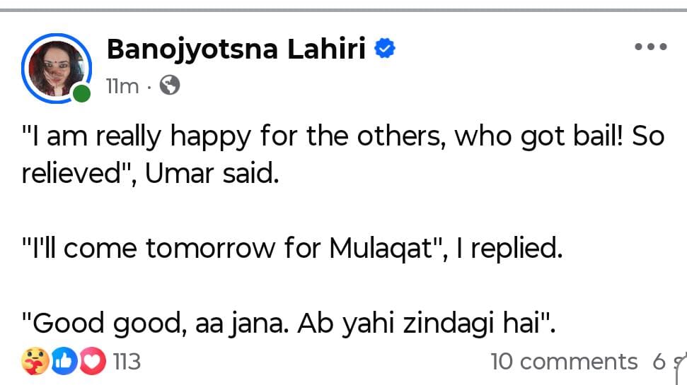 প্রথমে সোশাল মিডিয়ায় পরে সংবাদমাধ্যমে দেখলাম, তোমাদের জামিনের আবেদন ধর্মাবতাররা নাকচ করে দেওয়ার পর তোমরা বলেছ, অন্য যারা জামিন পেয়েছে তাদের জন্য তোমরা খুশি। আমি কিন্তু খুশি হতে পারিনি। তার দুটো কারণ।