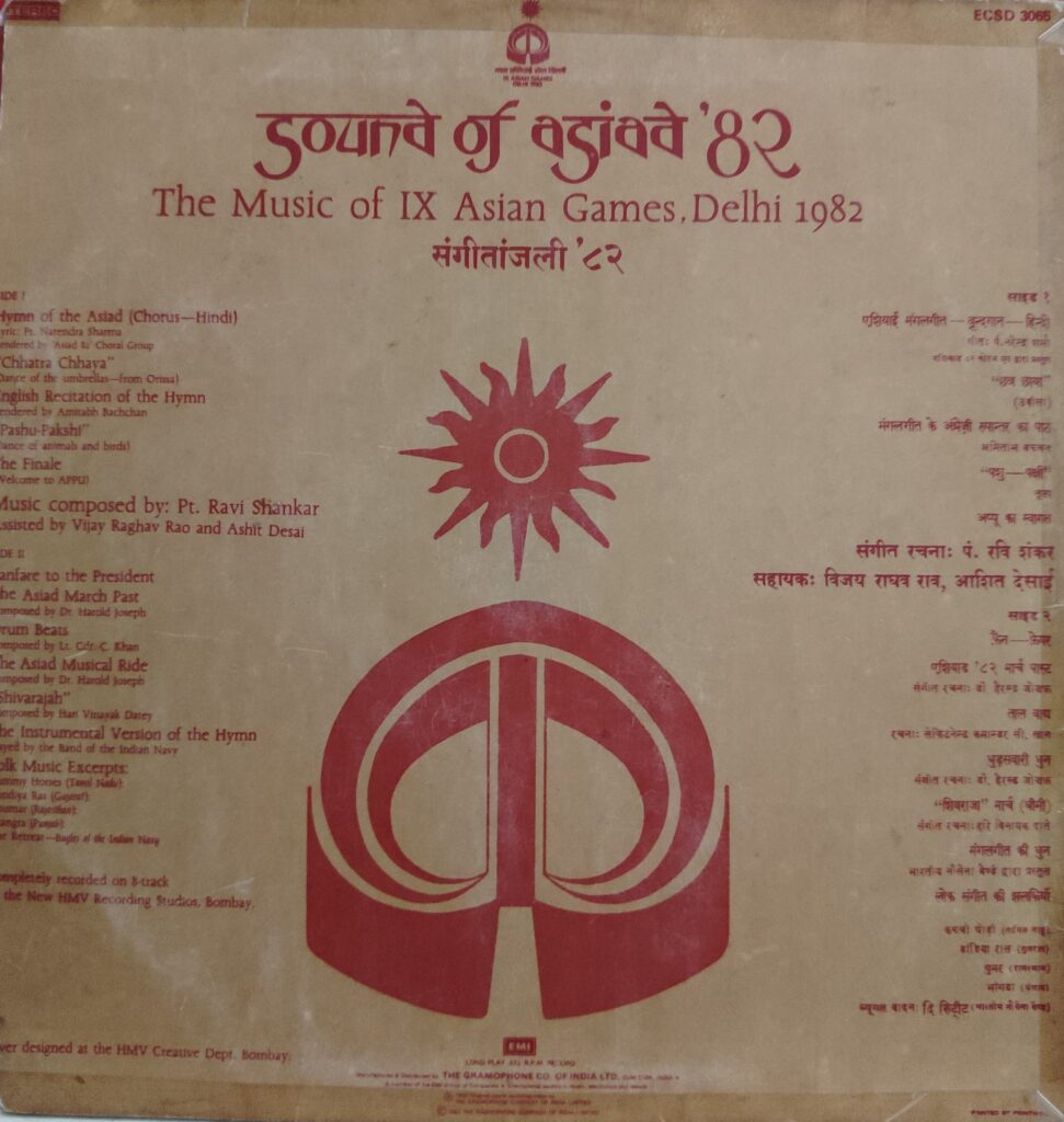 এই লেখা লিখতে গিয়েই মনে পড়ছে ১৯৮২ সালে দিল্লিতে নবম এশিয়ান গেমস্-এরজন্য সংগীত সৃষ্টি করেছিলেন রবিশঙ্কর। এইচএমভি একটি দীর্ঘ-বাদন রেকর্ড (রেকর্ড নম্বর ECSD 3065) হিসেবে সেটিও বাজারে এনেছিল।এছাড়াও তিনি রবীন্দ্রনাথের ‘সামান্য ক্ষতি’ (রবীন্দ্রজন্মশতবর্ষ, ১৯৬১), ‘চণ্ডালিকা’ ((১৯৬২-৬৩)এবং ‘শিশু ভোলানাথ’-র জন্যও সুর করেছিলেন বিভিন্ন সময়ে, কিন্তু প্রকাশিত রেকর্ডে সেগুলি ধরা নেই।