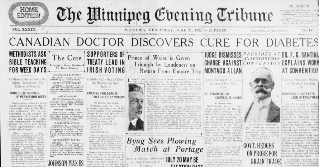 প্রাণীর অগ্ন্যাশয় থেকে ইনসুলিন নামে কোনও একটা পদার্থ ক্ষরিত হয়ে, রক্তের শর্করার মাত্রাকে নিয়ন্ত্রণে রাখে, এমন একটা ধারণা বহুকালই বিজ্ঞানী মহলে প্রচলিত ছিল। কিন্তু অগ্ন্যাশয় থেকে ক্ষরিত ইনসুলিনের চিহ্নিতকরণ তখনও হয়নি। ১৯২১ সালে কানাডার দুই চিকিৎসক ফ্রেডরিক বেন্টিং আর চার্লস বেস্ট সেই অসম্ভবকেই সম্ভব করলেন। তাঁরা কুকুরের অগ্ন্যাশয়ে শুধু ইনসুলিনের ক্ষরণকে চিহ্নিতই করলেন না, অগ্ন্যাশয় থেকে তাকে নিষ্কাশনও করলেন। এই ইনসুলিন এখন ইনজেকশনের মাধ্যমে ডায়াবেটিস আক্রান্ত কোনোও প্রাণী এমনকী মানুষকেও দেওয়া যেতে পারে। সে সুযোগ চলেও এল। পরের বছর, গৃহপালিত পশুর অগ্ন্যাশয় থেকে নিষ্কাশিত ও পরিশ্রুত ইনসুলিন ডায়াবেটিস আক্রান্ত এক মুমূর্ষু চোদ্দ বছরের বালকের শরীরে ইনজেকশনের মাধ্যমে প্রবেশ করালেন বেন্টিং। তার ফল হল অভাবনীয়। বালকটি অচিরেই সুস্থ হয়ে উঠল, রক্তে শর্করার মাত্রাও দ্রুত নিয়ন্ত্রণে এল। এই যুগান্তকারী আবিষ্কারের জন্য, বেন্টিং ১৯২৩ সালে মেডিসিনে নোবেল প্রাইজ পেলেন। সেই বছর থেকেই বাণিজ্যিকভাবে বিপুল পরিমাণ ইনসুলিন বাজারজাতও হল। বিশ্বের ডায়াবেটিস আক্রান্ত রোগীর কাছে হয়ে উঠল সঞ্জীবনী সুধা।