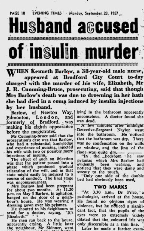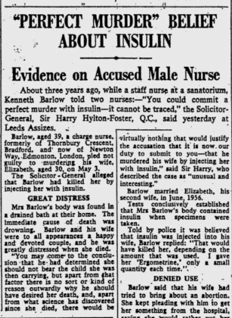 ইনসুলিনের ইনজেকশনের ক্ষেত্রেও তো প্যারাসেলাসের এই পর্যবেক্ষণ প্রযোজ্য। ব্যক্তিবিশেষে চিকিৎসাবিজ্ঞান নির্ধারিত ডোজে, যে ইনসুলিন ইনজেকশন ডায়াবেটিক রোগীদের ক্ষেত্রে প্রাণদায়ী, এলিজাবেথের মতো নন-ডায়াবেটিক ব্যক্তির ক্ষেত্রে অনাবশ্যক মাত্রারিক্ত পরিমাণে তাইই হয়ে উঠতে পারে ‘বিষ’। অর্থাৎ, এলিজাবেথের মতো নন-ডায়াবেটিক ব্যক্তির ক্ষেত্রে ইনসুলিন ইনজেকশনের ওভারডোজ মৃত্যুদূত। এলিজাবেথের ডায়াবেটিস ছিল না। তাই তার ইনসুলিন ইনজেকশন নেওয়ার কোনও প্রয়োজনও ছিল না, তাই তার ক্ষেত্রে অসাবধানতাবশত ইনসুলিনের ওভারডোজের সম্ভাবনাটিকেও নস্যাৎ করা যায়। সুতরাং, এতদিন যে মৃত্যু নিছকই দুর্ঘটনা ছিল, তা ক্রমশ হয়ে উঠছে এক ঠান্ডা মাথার পরিকল্পিত হত্যাকাণ্ড!