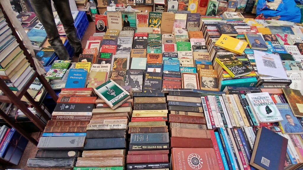 বাজার শেষের পথে, অ্যামাজন-ফ্লিপকার্টে যে-সমস্ত বই সহজলভ্য, তাদের দিকে তাকাই না। বরং চোখ চলে যায়— উর্দু ভাষায়, সাদাত হাসান মান্টোর গল্পের বই, অমৃতা প্রীতমের ‘কাগাজ তে ক্যানভাস’ কাব্যগ্রন্থের প্রথম সংস্করণে। দেখি আর. কে. লক্ষণের ‘দ্য আনকমন ম্যান’-এর খুব পুরনো একটি সংগ্রহ। পীযূষ মিশ্রর একটি কবিতার বই, ‘কুচ ইশক কিয়া কুচ কাম কিয়া’। ইতিমধ্যেই কেউ টিফিনবাক্স খুলে ভাগ করে নেয় রুটি আর ডাল। কেউ বলে, ‘গীতা কেন শ্রেষ্ঠ।’ কেউ আবার বলে, ‘ইসলামের পথে নারীদের ভূমিকা কী।’