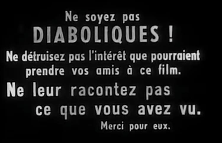 ফিরে আসা যাক ইতিহাসে। ‘দ্য ব্যাট’-এর পর, ১৯৫৫ সালে হেনরি জর্জ ক্লুজো নির্মিত ফরাসি চলচ্চিত্র ‘Le Diabolique’ ছবিটির শেষেও একটি টাইটেলে কার্ড প্রদর্শিত হয়, যেখানে স্পয়লার দেওয়াকে রীতিমতো ‘শয়তানি’ বলে দাগিয়ে দেওয়া হচ্ছে। বলা হচ্ছে, ‘শয়তানি করবেন না! সিনেমায় যা দেখলেন, সেটা আপনার বন্ধুদের বলে দিয়ে তাঁদের আগ্রহ নষ্ট করবেন না। আপনার বন্ধুদের তরফেই আপনার প্রতি কৃতজ্ঞতা রইল।’