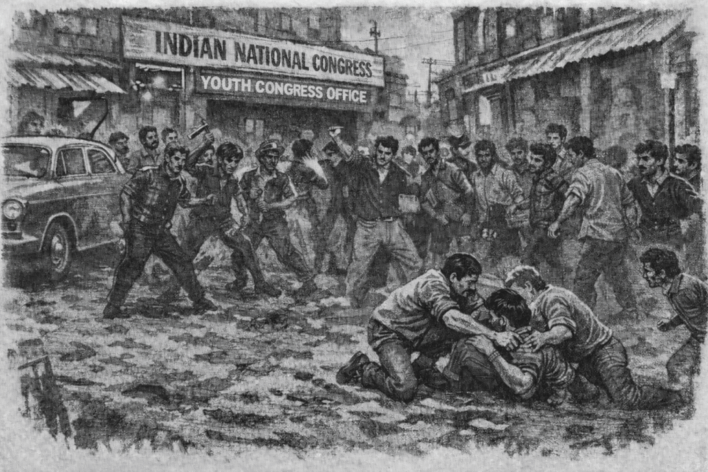 বাঘাদা থামল। কিন্তু টুকরে থামল না। তার পরের, কি তার পরের দিন টুকরে কালীঘাট বাজারের ওপর বাঘাদার পার্টি অফিসেই হামলা করে বসল। সরাসরি ওয়ার রুম অ্যাটাক! বাঘাদা তখন ছিল না। যারা ছিল তারা সবাই পালাল। ব্যাপক সোডার বোতল চার্জ করল। ওপরে ছিল মঙ্গলদা, বাঘাদার এক ভাই, টুকরে ওর পাছায় খুর মেরে চলে গেল। মঙ্গলদা পিজিতে চলল— চোখে জল, পাছা রক্তাক্ত।