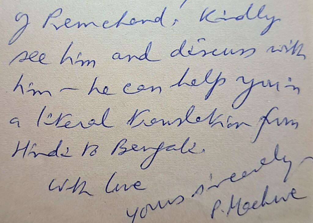 You wanted the translation of Premchand’s ‘Mukti-Marg’. My friend Sri Subimal Basak has translated many stories of Premchand. Kindly see him and discuss with him— he can help you in a literal translation from Hindi to Bengali.