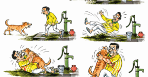 ‘কুকুরটা তখন ঠিক এ-দিকটা ছিল না, ও-দিকে চড়তে গিয়েছিল। বলতে-বলতে সবাই হইহই করে উঠল— আসছে, আসছে। কুকুরটা টিউবওয়েলের সামনে এবার বেচাকাকার মুখোমুখি। বেচাকাকা ঘাবড়াল না। চুপ করে দাঁড়িয়ে থাকল। কুকুরটা এগিয়ে আসছে— এবার বেচাকাকাও এগিয়ে যাচ্ছে।’