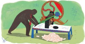 ‘চাপ থাকবে, কিন্তু কেউ বুঝতে পারবে না। এই যে চারিদিকে এত লোক দাঁত ক্যালাচ্ছে, সবাই কি চাপমুক্ত? খবর নিলে জানবে, কার বাজারে পাঁচ কোটি দেনা, কার শরিকি মামলা চলছে পাঁচ বছর ধরে— তবু এরা কিন্তু দেখাচ্ছে না। বিন্দাস ঘুরে বেড়াচ্ছে।’