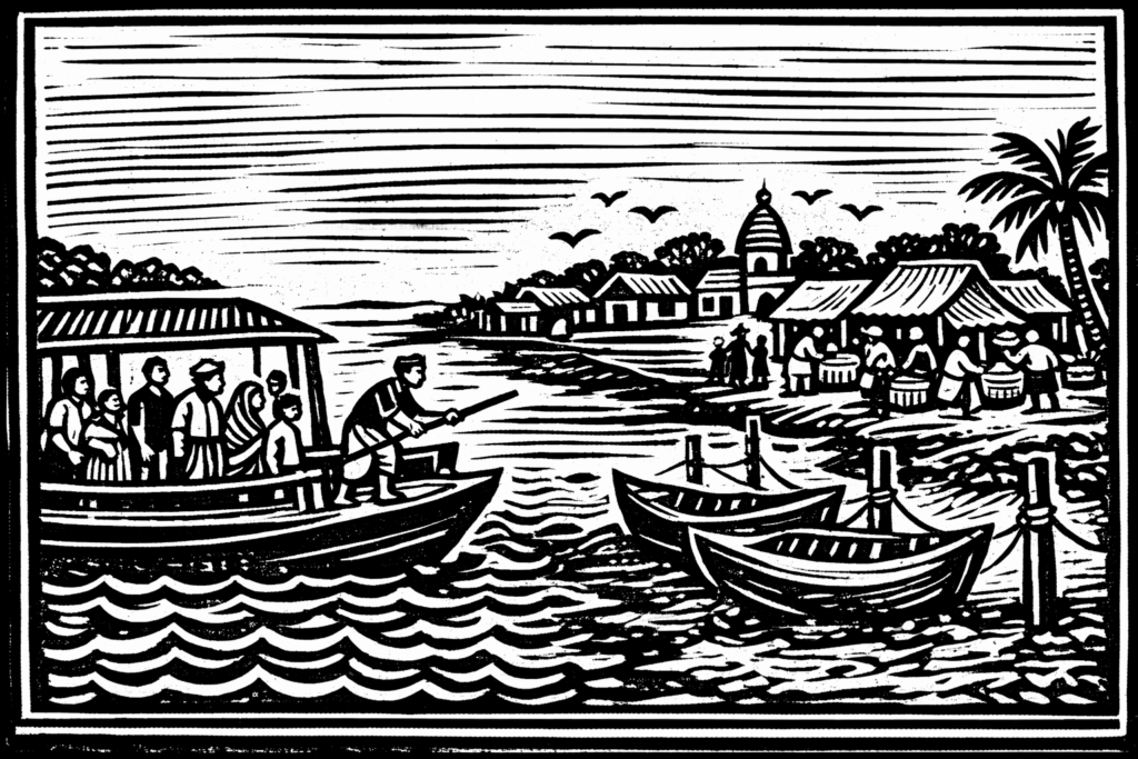 গঙ্গার ঘাটে আছে শায়িত সত্যবানকে কোলে নিয়ে সাবিত্রী বসে আছেন। কিছুদিন আগে আমি সেই সাবিত্রী-সত্যবানের সিঁদুরচর্চিত মূর্তির দিকে তাকিয়ে ভাবছিলাম। ছোটবেলার সেই ঠাকুরের মূর্তি কি ওখনও রয়েছে? তাহলে আমার মায়ের ছোঁয়ানো সিঁদুরের কোনও কণা এখনও ওখানে অবশিষ্ট আছে। আগে ফেরি ছিল জোয়ারের সময়। ভাটায় নৌকা বাঁধা থাকত। ফেরি পারাপার দু-পয়সায়। ওপারে চেতলা, চেতলার হাট।