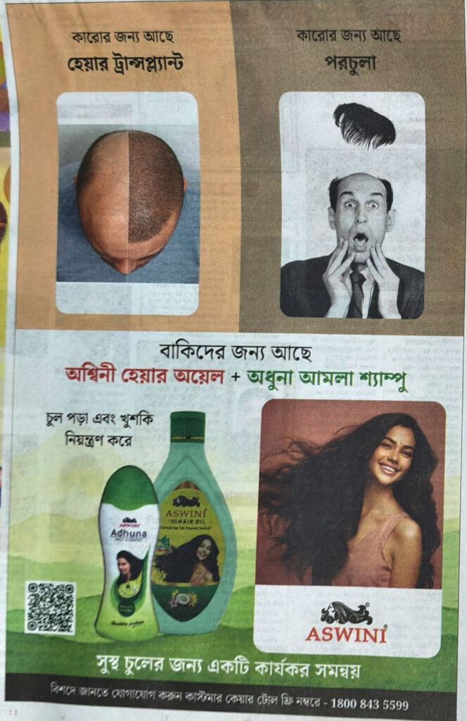 চুলের তেল আর শ্যাম্পুর বিজ্ঞাপন।