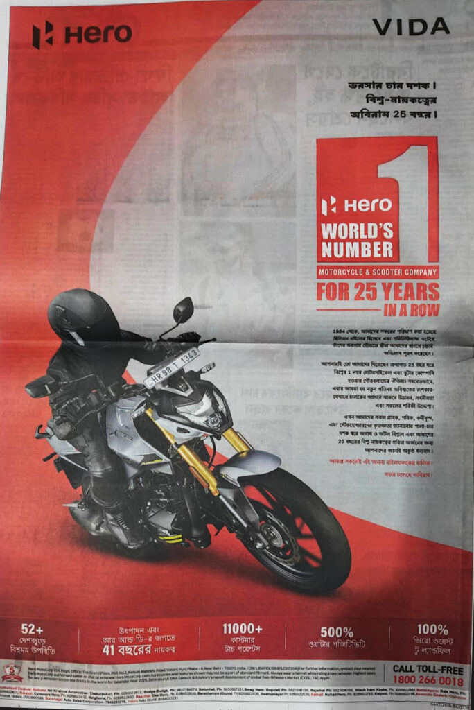 মোটরসাইকেলের বিজ্ঞাপন। জলের পাম্প-এর বিজ্ঞাপন। বেসরকারি বিমার বিজ্ঞাপন